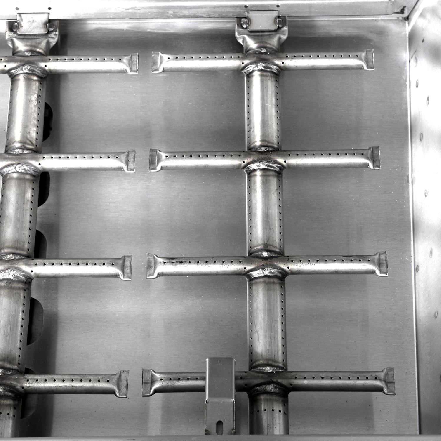 Hestan Outdoor grills combine the ultimate in precision performance & innovative design to meet the needs of every griller, from the novice to the experienced grill master. The Hestan Outdoor grill series is made in the USA with heavy-gauge welded-body construction, commercial grade end caps, Zamak die cast knobs, burner indicators & bezels and accented throughout by Hestan Marquise panels and handles. The Hestan 36-Inch Freestanding Propane Gas Grill On Tower Cart features two heavy duty 321 grade stainless steel Trellis tubular style burner that provide up to 25,000 BTUs each and one high-performance variable ceramic infrared sear burner that provides up to 22,000 BTUs for a total of 72,000 BTUs of high performance cooking power. The hybrid burner configuration offers maximum cooking options. The ceramic infrared sear burner allows you to sear thick cuts of meat, sealing in precious juices. Grilling surface temperatures are evenly distributed by a radiant ceramic briquette tray system. The 13,000 BTU multipurpose ceramic infrared top burner with salamander placement makes is perfect for rotisserie, broiling or finishing and includes a concealed whisper-quiet chain-driven rotisserie motor system rated for up to 50-pounds, as well as a porcelain broiling pan, rotisserie spit and forks. The laser DiamondCut 5/16-inch stainless steel cooking grates and warming rack provide 653 sq. in. primary and 236 sq. in. secondary cooking area for a total of 889 square inches of evenly-heated grilling surface. The warming rack features three vertical positions, allowing it to be used as additional cooking area or concealed storage when not in use. This grill comes packed with many convenient features that add to your grilling experience, including the easy-open, spring-assist Horizon hood, designed to stay open at any desired height. Motion-activated Stadium halogen under-hood lighting illuminates the grilling area while the LED control panel lighting keeps your controls visible for nighttime grilling and entertaining. The symmetrical flip-to-clean radiant tray and stainless steel removable drip tray make cleanup simple, and a one-push automatic ignition system makes lighting your grill a breeze. The Hestan Double Door Tower Cart offers an abundance of storage and working space with two folding side shelves and two soft-close access doors with recessed Marquise-accented panels & commercial grade handles. The cart interior features a pullout propane tank tray that can easily be converted for trash & recycling bin storage. Commercial-grade casters allow for smooth cart movement and 360-degree maneuverability. This grill features durable, powder coated stainless steel panels in the Hestan signature Matador color finish.