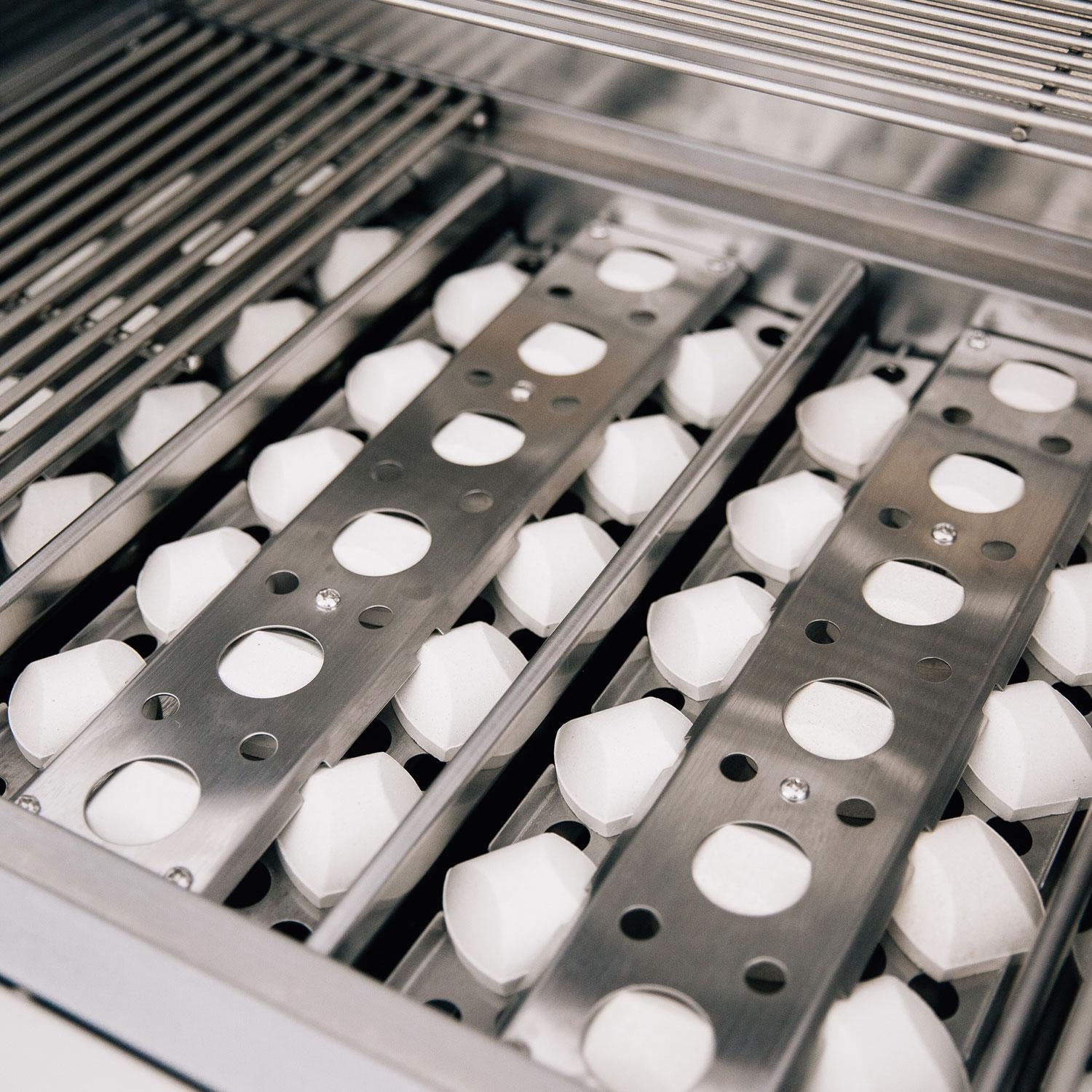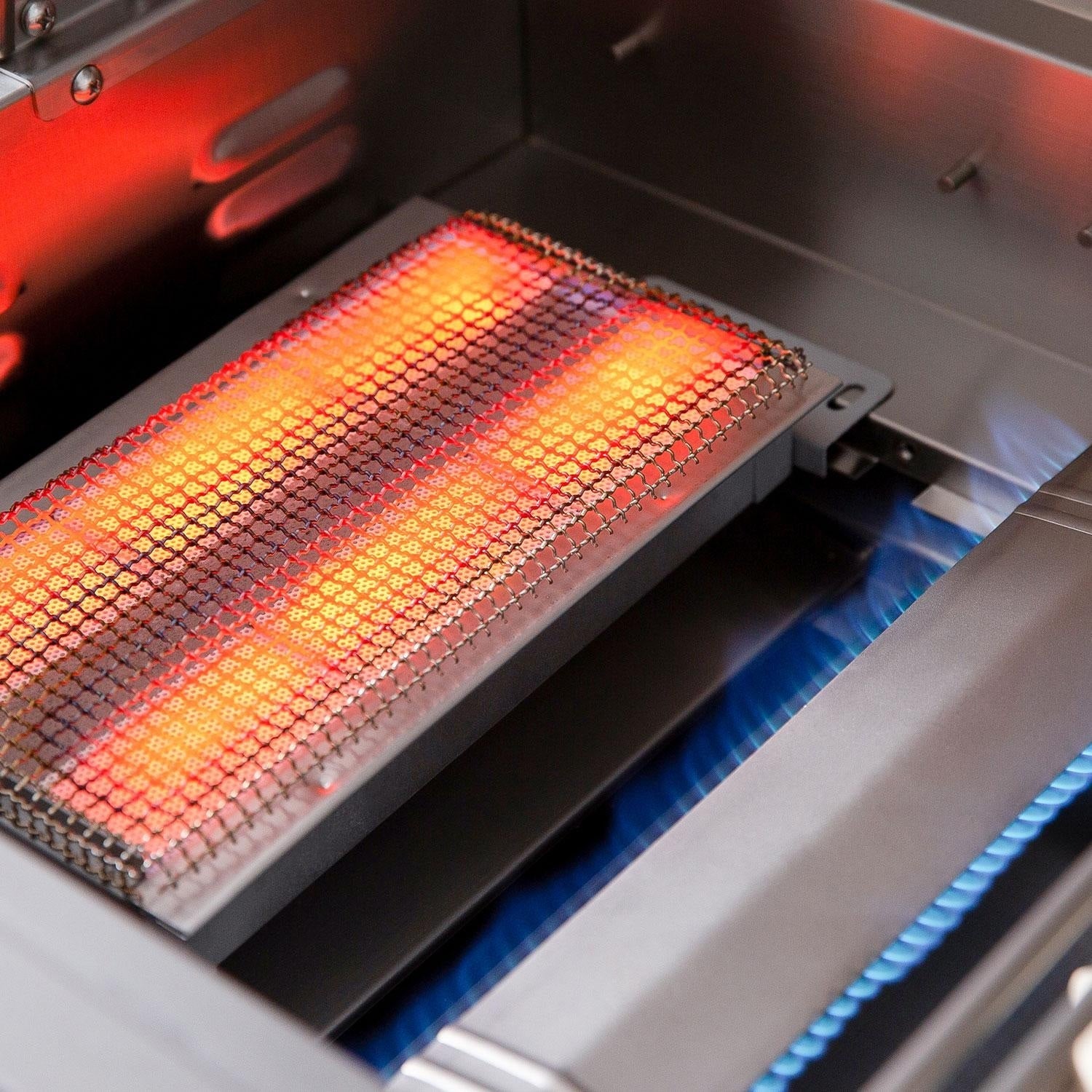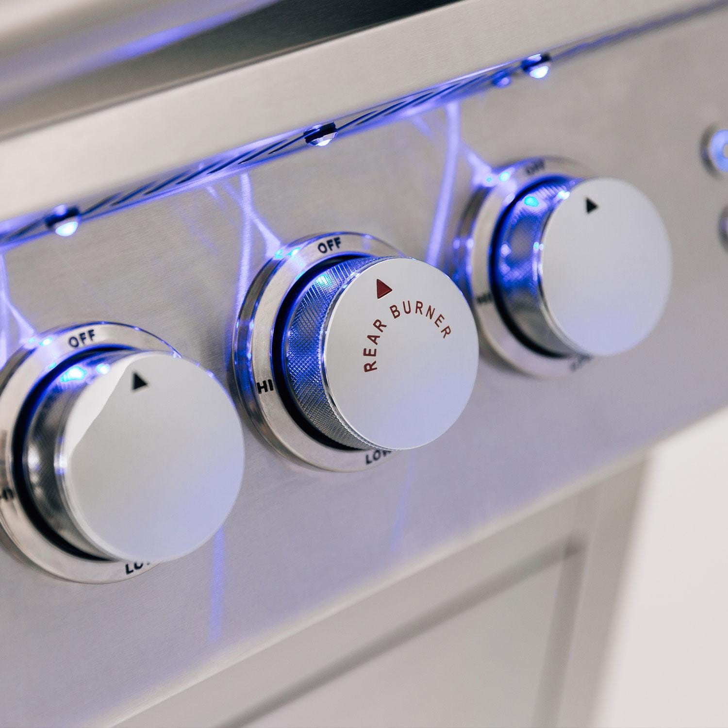 From the first spark to the last bite, the Sizzler Pro 40-in 5 Burner Built-In Propane Gas Grill turns outdoor cooking into an effortless canvas. Designed for those who appreciate precision and style, it brings a seamless balance of power and sophistication to your outdoor space. Crafted from durable #443 stainless steel, this grill is built to impress, with high-powered 14,000 BTU steel cast burners that ensure intense, even heat and precision airflow for perfect sears. Soft interior halogen lights illuminate your cooking space, and the exterior LED indicates burner status. Sturdy 8-mm round grates provide a solid foundation for flawless grilling, while our Gold Standard Warranty protects your investment. The commercial-grade Sizzler Pro delivers unmatched reliability, style, and the kind of confidence that makes every meal an experience worth savoring.