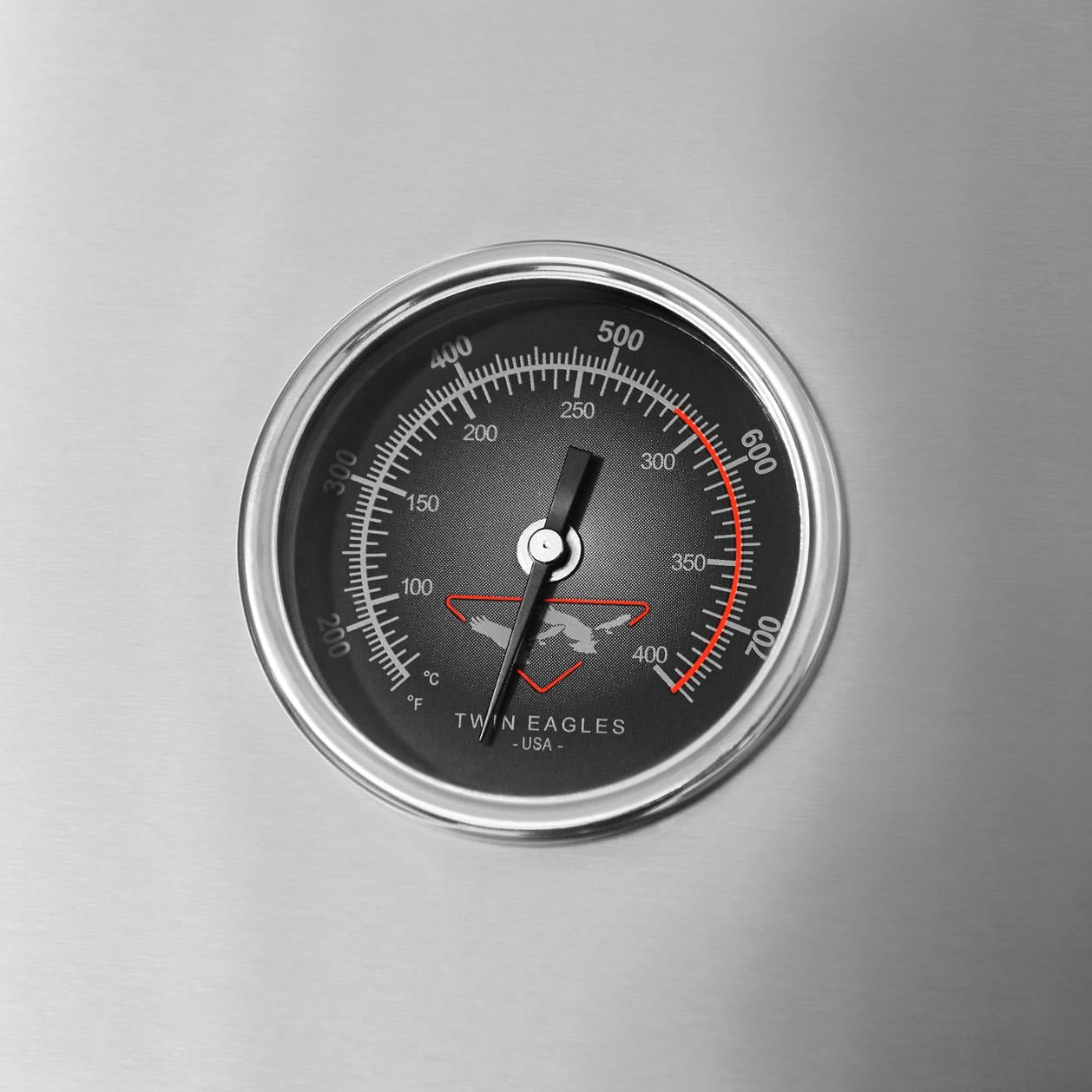Twin Eagles has mastered the secret sauce in grilling perfection with their innovative Five-Part Grilling System that is designed for the ultimate grilling synergy. Twin Eagles gas grills feature premium-grade stainless steel with seamless heli-arc welded construction for maximum strength and durability. The double-lined hood with hidden heavy-duty lift extension springs provides better durability, more insulation, and reduces the weight to make it easier for you to open and close. The Exclusive Control Illumination control knobs feature highly visible, graduated indigo blue line and a control indicator notch that illuminates to give a precise control setting. This 54-inch grill has three (3) 25,000 BTU 14 gauge 304 grade stainless steel main burners with zone dividers letting you independently control the heat, one (1) 25,000 BTU infrared sear burner, and high quality ceramic briquette flame tamers that distribute the radiant heat more evenly across the cooking surface. The 3/8 inch stainless steel hexagonal cooking grates offer more food-to-surface contact and allows more heat to be conducted into your food generating deeper and thicker restaurant-style sear marks. The two position heavy-duty rotisserie system has two independently controlled infrared rotisserie burners and fully integrated motor with 100 pound turning capacity and a chain-driven design providing consistent and uniform rotation of the rotisserie rod. The rotisserie rod conveniently stores in the drip tray handle when not in use. This grill has a reliable hot surface ignition, interior lights with hood-activated light switch for nighttime grilling, three-position warming rack that conveniently stows away when not in use, and a large capacity sealed smoker box. The grill cart features heavy duty stainless steel construction with a sleek professional style to compliment the Twin Eagles grills and accessories. This cart has two self-latching storage drawers and one soft-closing access door that feature a flush handle design with high polished accents and concealed hinges. Use the handy pull-out tray inside the door to easily store a propane tank or a trash receptacle. The two stainless steel side shelves keep your BBQ tools at hand, provide a convenient work area while you cook, and fold down to save space when not in use. The heavy-duty casters have front brakes allowing you to easily relocate and secure the grill whenever necessary. This grill cart is compatible with all Twin Eagles 54-inch built-in gas grills. Twin Eagles products are designed and manufactured in the USA with pride.