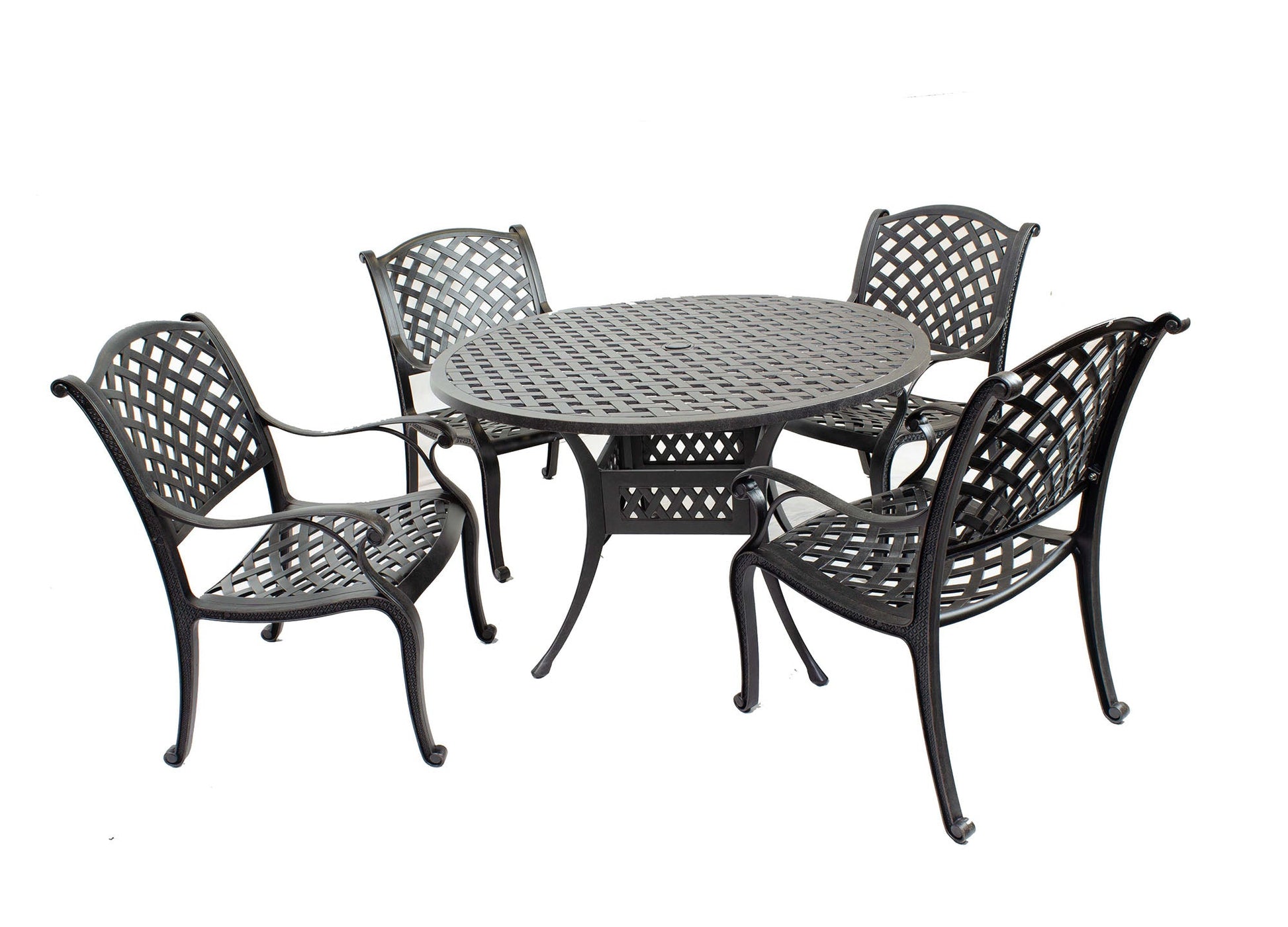4 x LACED DINING CHAIRS + 48" ROUND WEAVE DINING TABLE