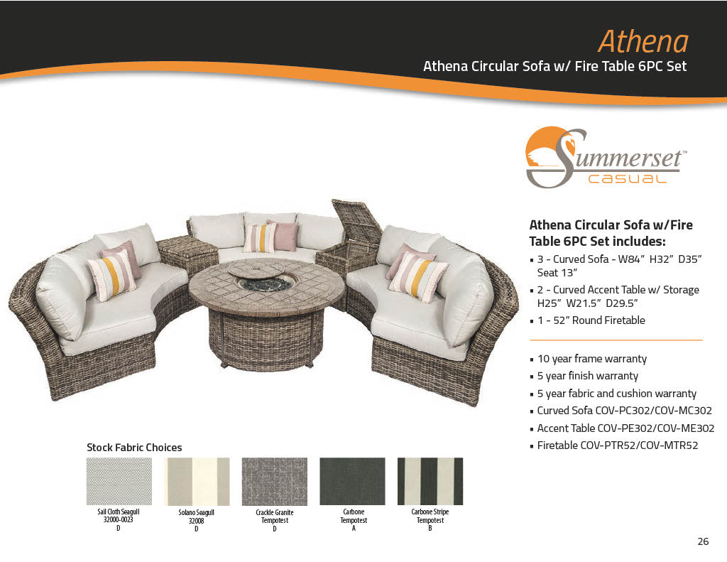 Athena Circular Sofa w/ Fire Table 6PC Set