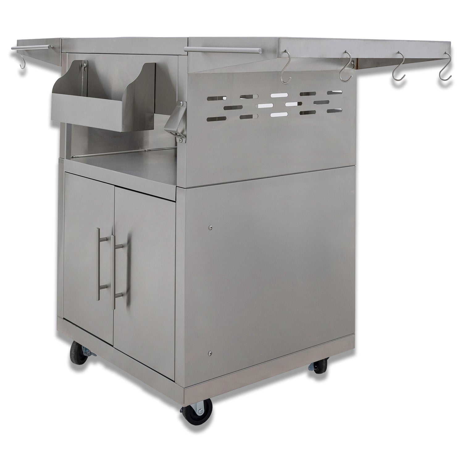 Stainless Steel construction is durable in outdoor conditions Adds practical storage for your BBQ accessories Side Shelves provide a convenient work area while grilling Heavy duty casters allow you to reposition the grill as needed