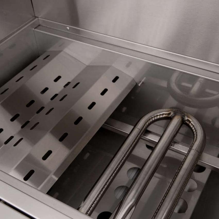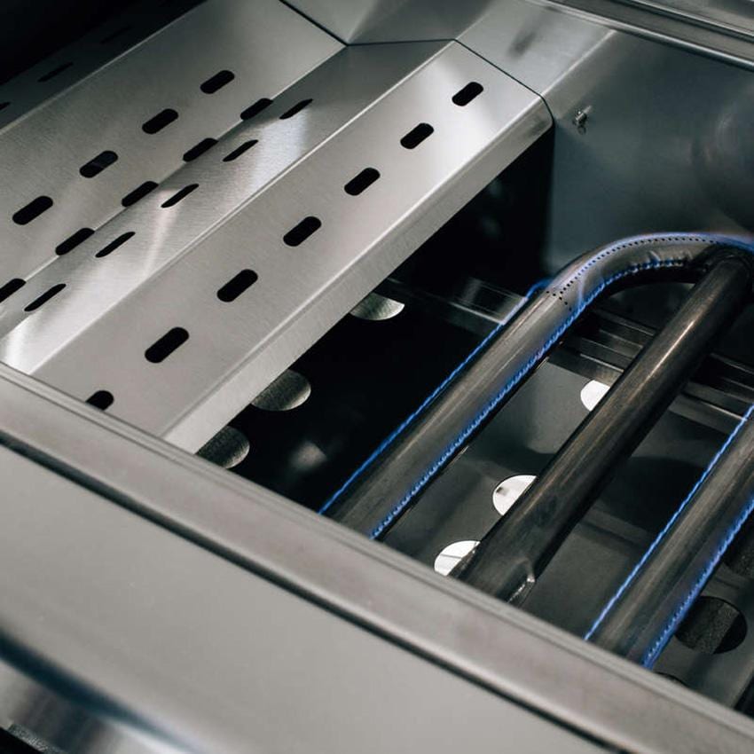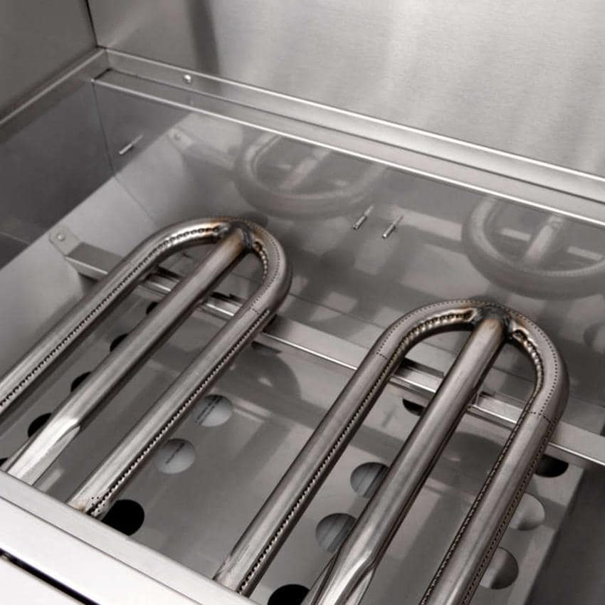 The Builder grill is a sleek, rugged gas grill designed for commercial or hospitality applications. Constructed entirely with 304 grade stainless steel, the Builder is designed to excel in heavy-use environments such as apartment, hotel or country clubs. This 30-inch built-in gas grill is powered by two 26,000 BTU, 304 grade stainless steel U-shaped burners that push a total of 52,000 BTUs. The cooking space measures 541 square inches, and the grates are built from 9mm stainless steel rods. The SBG32-LP is also equipped with heavy-duty anti-theft knobs and a double insulated hood. Ignition is safe and convenient, thanks to a flame-thrower style ignition that also includes a manual flash tube backup. Unit ships as natural gas ready with orifices for propane conversion included. Conversion must be done by a licensed professional.