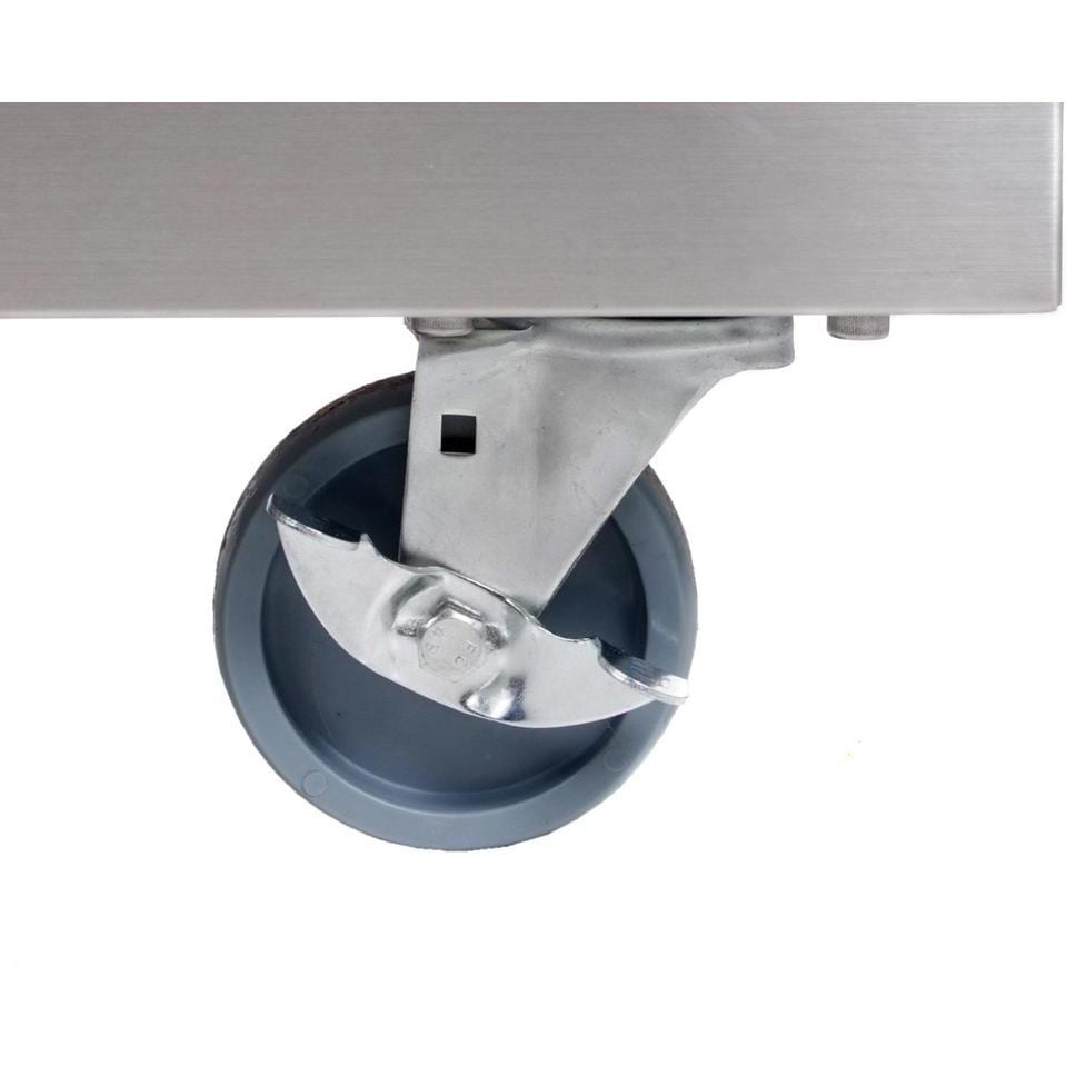 This PGS Legacy Big Sur 51-Inch Gas Grill features a 304 grade stainless steel exterior, four 25,500 BTU heavy duty stainless steel burners that push 102,000 BTUs of total cooking power on the grilling surface. The 14,000 BTU ceramic infrared backburner delivers cooking flexibility, and the heavy duty rotisserie motor, spit rod, and counter balance is capable of supporting up to 15 lbs. The ceramic Moon Roks with stainless steel rock grate provide even heat and perfect smoke control, and the 5/16 inch stainless steel rod cooking grids with Vari Grid spacing offers grilling versatility across 960 square inches of main cooking area. Grill also features the Sure Start continuous spark electronic ignition, convenient lighting tube for ignition backup, and a 336 square inch stainless steel warming rack. The PGS Gas Grill cart features all stainless steel construction, double access doors, two access drawers, pull out propane holder, four swivel casters, and two fold down side shelves. Grill includes propane regulator and 16-inch hose. IMAGE SHOWS ONE SHELF. TWO SHELVES ARE INCLUDED.