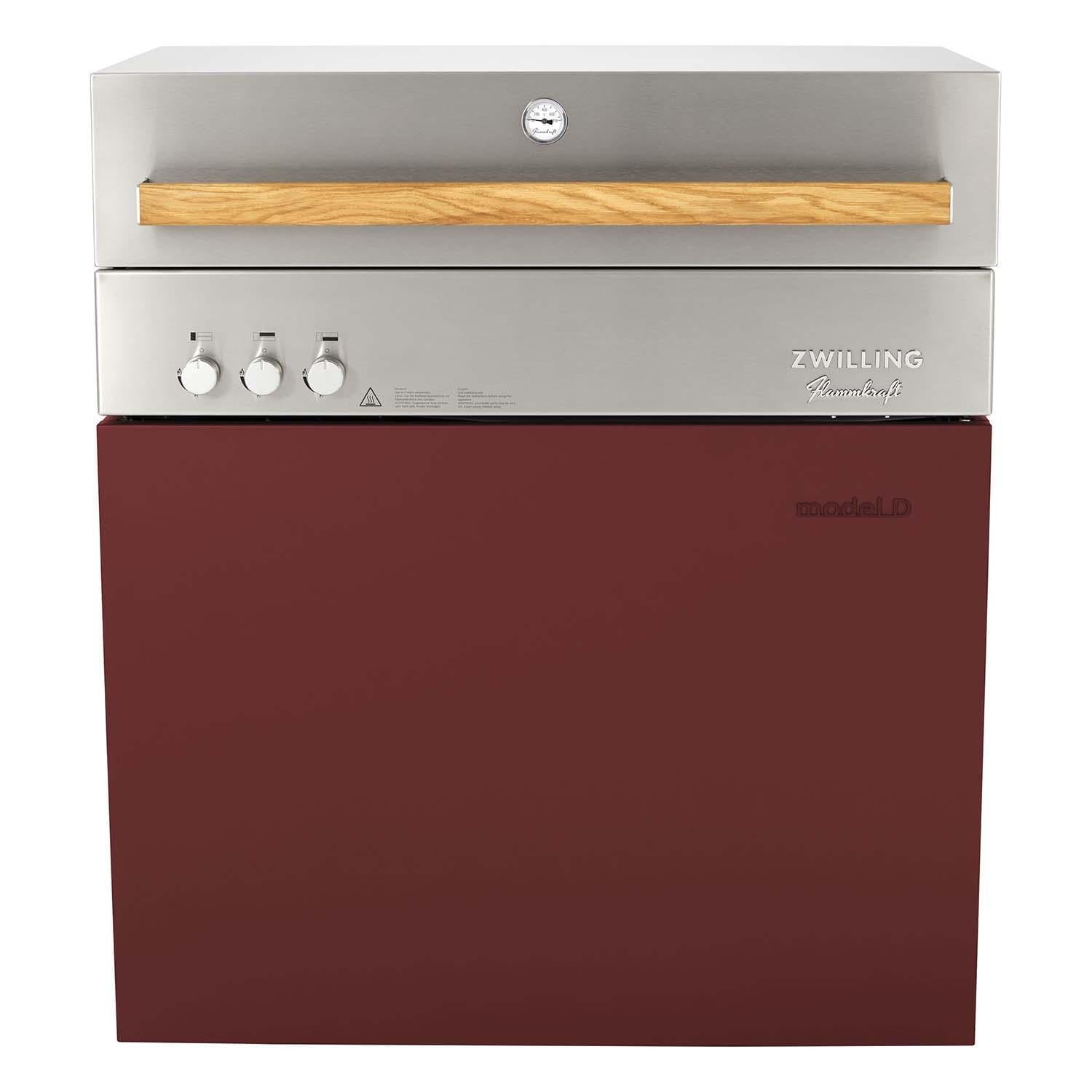 Transform the way you cook and discover countless cooking possibilities with the ZWILLING Flammkraft Model D Grill in Ruby, featuring innovative infrared technology. An award winning design, versatile infrared burners that create individual cooking and heating zones, high quality stainless steel and expert German engineering will set a new standard for outdoor kitchens and cooking ; Discover the Model D difference. Constructed entirely of high quality stainless steel and crafted in Germany, the Model D is versatile, powerful and the perfect ingredient for any outdoor kitchen, featuring faster and hotter grill temperatures between 167 and up to 1652 degrees Fahrenheit. Form meets function. Created with convenience in mind, the Model D features a substantial, yet sophisticated design that looks good and works even harder, featuring smart storage solutions, with built in features to maximize space and an integrated wind deflector. And while the Model D stands alone, its also built in compatible for any outdoor kitchen. Get in the zone. The pioneering placement and arrangement of burners creates individual cooking and heating zones so you can grill, roast and more with direct and indirect heat (think convection oven too). The large, multipurpose surface also allows you to cook different foods at varying temperatures. And the integrated, all purpose oven trays are perfect for baking up sumptuous sides, veggies and more. Enjoy endless possibilities and meals. Make the most of your ZWILLING Flammkraft outdoor cooking experience with grilling accessories specially designed to complement the grill area. Prepare thin strips of Wagyu beef, tender scallops and crunchy vegetables on the Teppanyaki plate, whip up doughy delights with the pizza stone, saute stir frys in the wok or cook up chicken on the rotisserie skewer. Open and shut. Designed so that you can cook with the hood open or shut, the hood of the Model D is substantial, and features a double wall for complete insulation which ensures it heats up quickly and keeps an even temperature. Easy to clean. The Model D is easy to clean and maintain, with a convenient drawer for draining grease. Grates and burners can be removed and inserted quickly for easy cleanup and there s also an integrated waste bin compartment. Every Model D comes with a storage box that can also be used to soak and clean the grill parts. Color your (outdoor) world. The Model D is available in 7 timeless shades.
