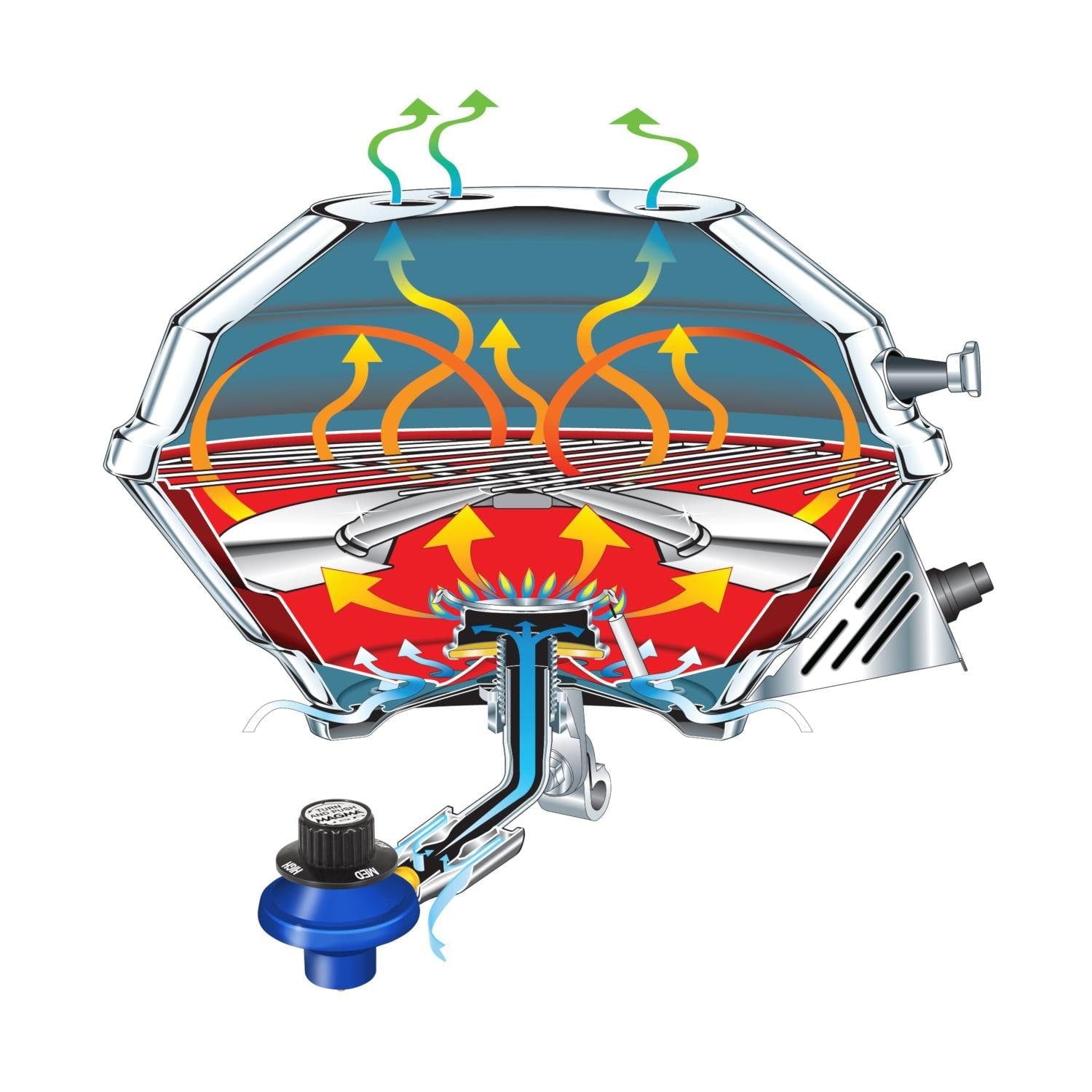 The Magma original size Marine Kettle 3 combination stove and gas grill is constructed with 304, 18-8 mirror-polished stainless steel with marine grade qualities that add superior corrosion resistance and is less prone to rust. This grill features an electronic ignition system, stainless steel burner and grates, and a virtually blow-out proof turbo venturi tube design, all wrapped up in a heavy-duty safety shell that keeps the outside of the kettle cool while protecting it from discoloration. Quickly achieve hot, even temperatures and reduce the amount of flare ups with the special radiant plate heat distribution design and convection heating. Grill burgers, sear steaks, or even try your hand at baking or roasting at sea. Enjoy stress-free mounting with the cast stainless steel L-bracket and clamp assembly. The included round rail mount is also constructed from 18-8 stainless steel and 356 anodized aluminum to endure the elements. The quick-disconnect design allows for easy removal and leaves no hardware on the rail. Made with quality and durability in mind, the original Marine Kettle 3 combination stove and gas grill helps you combine your loves of fresh BBQ and sunny days above the waves.
