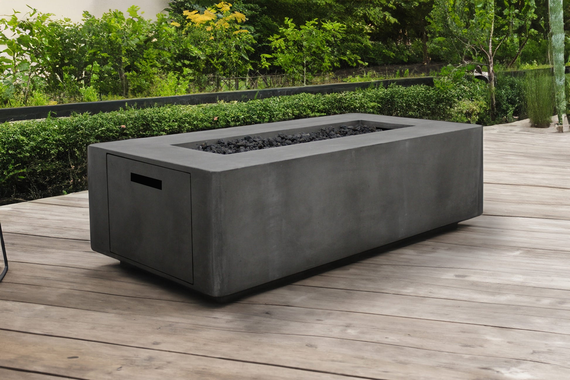 The Porto 60 is a low profile version of the Porto that also offers a clean look and convenience by concealing a propane tank inside. Its low profile and rounded corners sets it apart from the other Porto designs. It provides an outdoor retreat of warmth and ambiance.