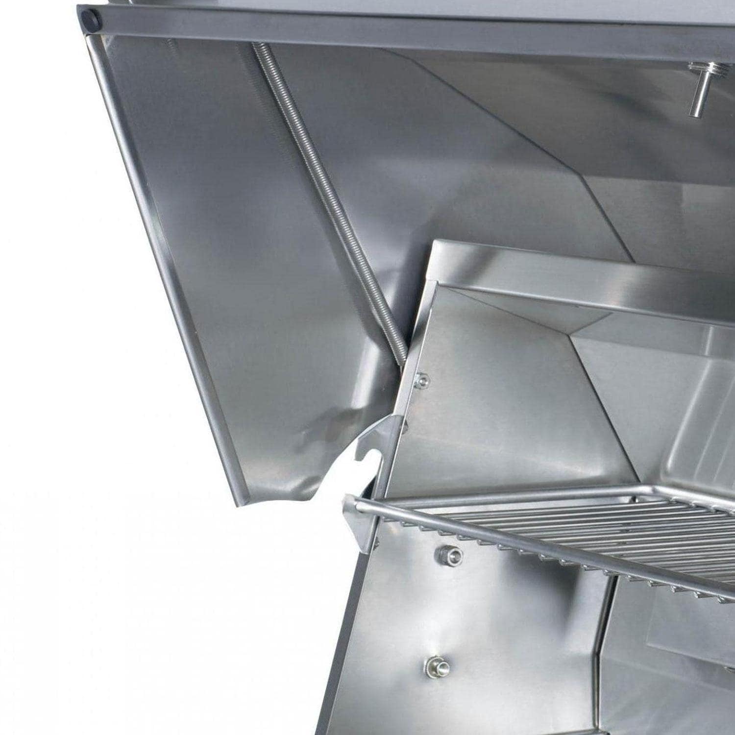 Steadfast durability-heavy-duty welded front hood construction eliminates gaps where grease can collect, ample capacity-733 square inches of cooking surface (508 primary, 225 secondary), beautiful illumination-blue-lit control knobs, smooth opening-fluid rotation handle, premier platform-stainless steel grilling grates of the 42-Inch Built in Propane Gas Grill with Three SS Tube Burners. Understated luxury - brushed stainless steel finish on canopy, bullnose, and drip tray, Installation into a combustible enclosure requires an insulated jacket accessory.